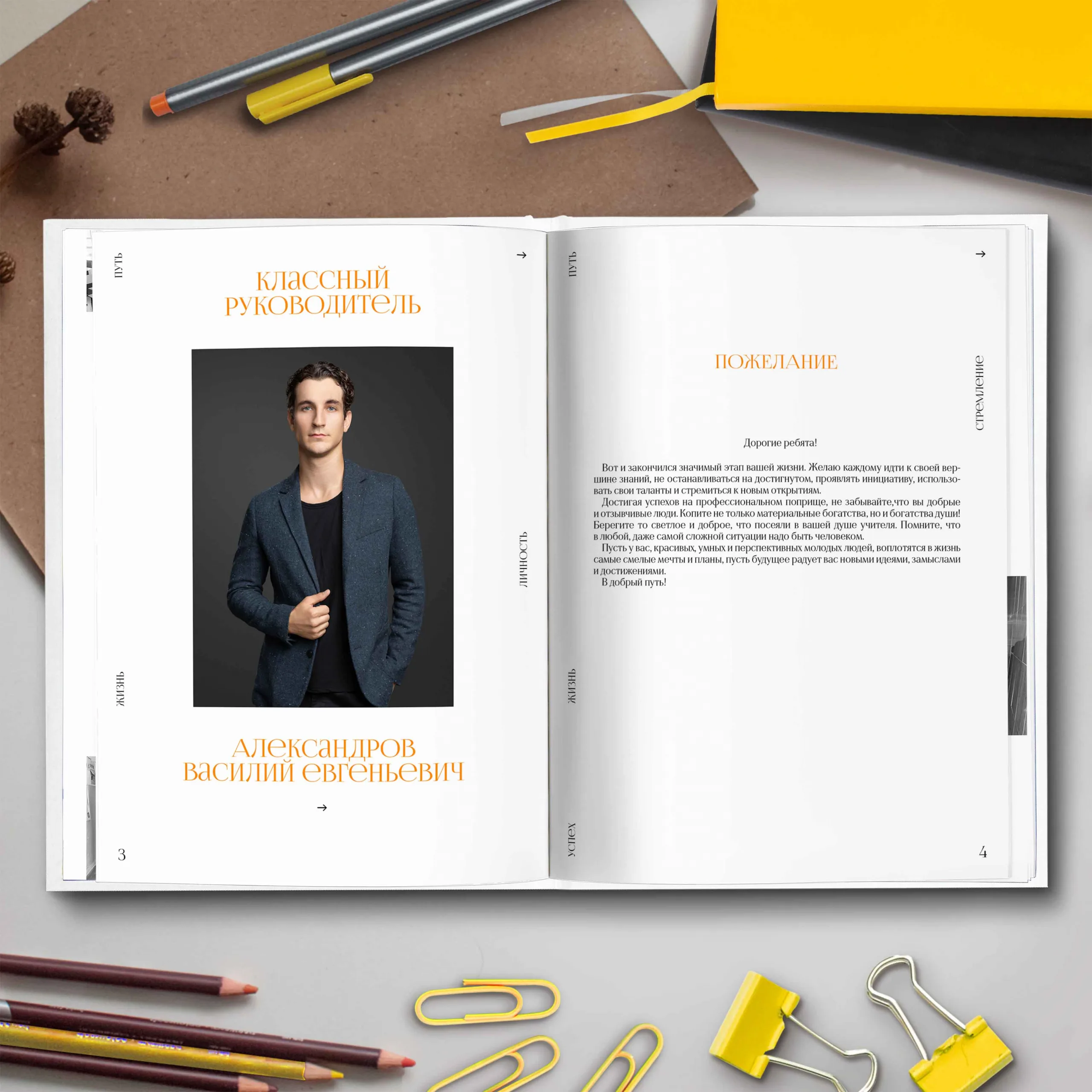 2ой разворот — фотография классного руководителя с напутственным словом