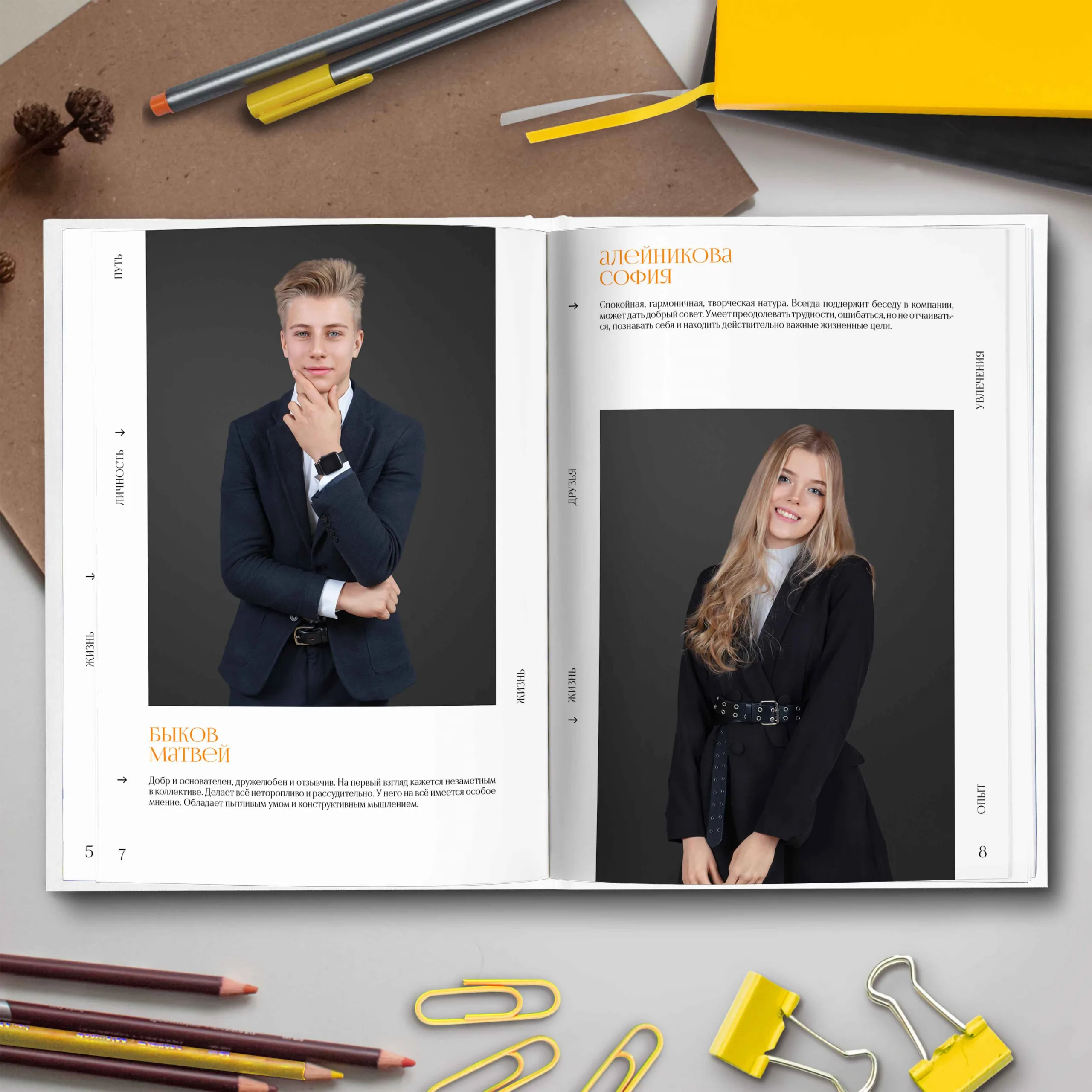 4ый разворот и далее — личные страницы учеников с личной характеристикой