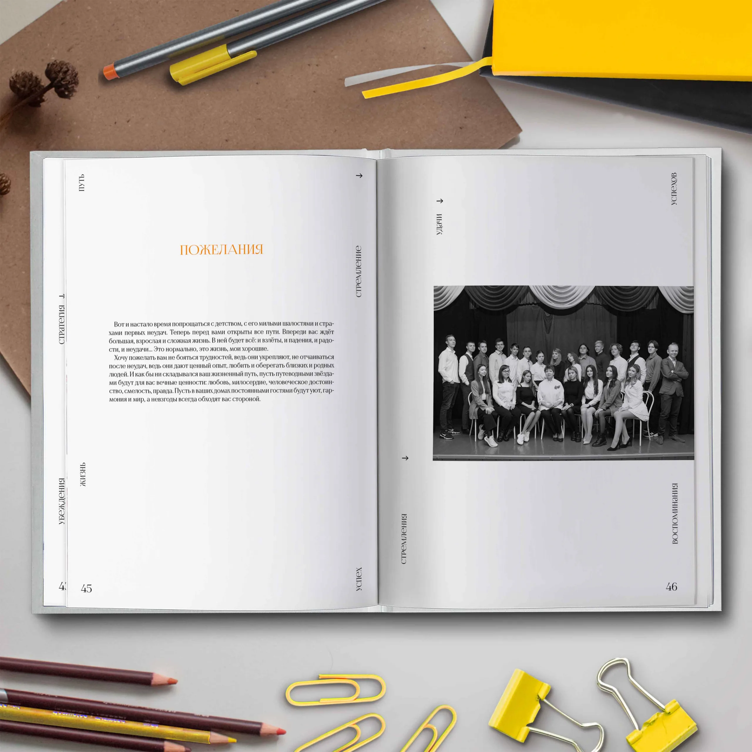 9ый разворот — напутственное слово и общая фотография класса