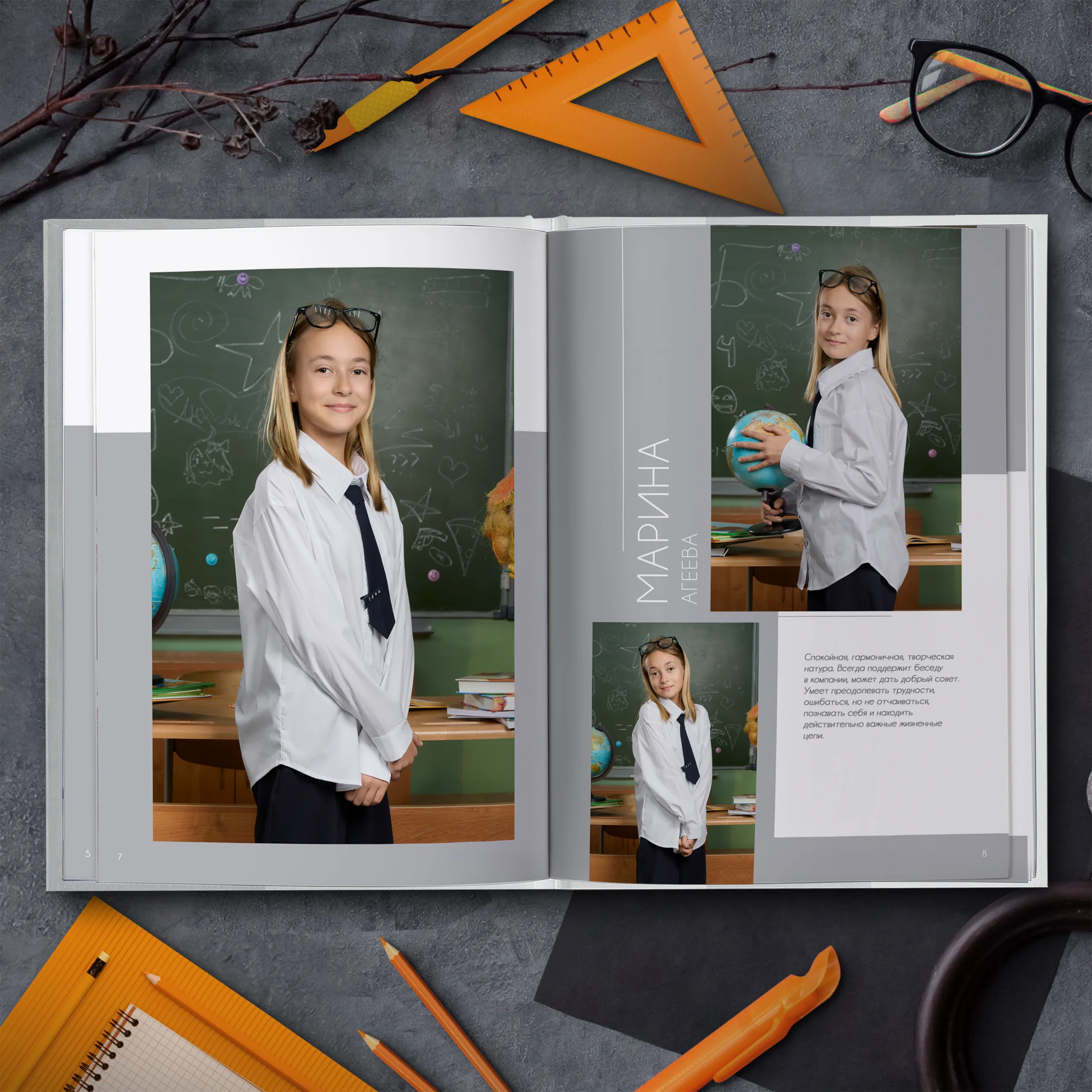 Обращаем внимание, что фотография дублируется в трех местах: обложка, личная страница/разворот и виньетка